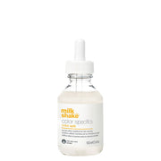 milk_shake color specifics color split, the new colouring additive with a barrier-effect that allows for the overlapping of different shades at the same time without needing foils and without smearing or staining. It contains aloe vera extract, an emollient, restorative and protective ingredient that has a unique, natural regenerating effect. milk_shake color split unleashes the need for creativity and allows for multicolour techniques without using foils or strips.