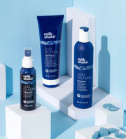 Cold Brunette counteracts naturally occurring orange/ red undertones in cool-toned brunettes. The shampoo and conditioner can be used at the basin after a color service and also at home as a maintenance product, along with the toning spray.