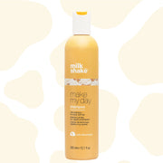 adds a little something extra to your clients’ hair care routine. featuring our iconic sweet vanilla scent , signature milk proteins and fruit extracts , Make My Day is the perfect first step into the world of milk_shake.